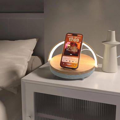 Music Table Lamp with Wireless Charger, 4 in 1 Touch Bedside Lamp, Bluetooth Speaker, Phone Holder